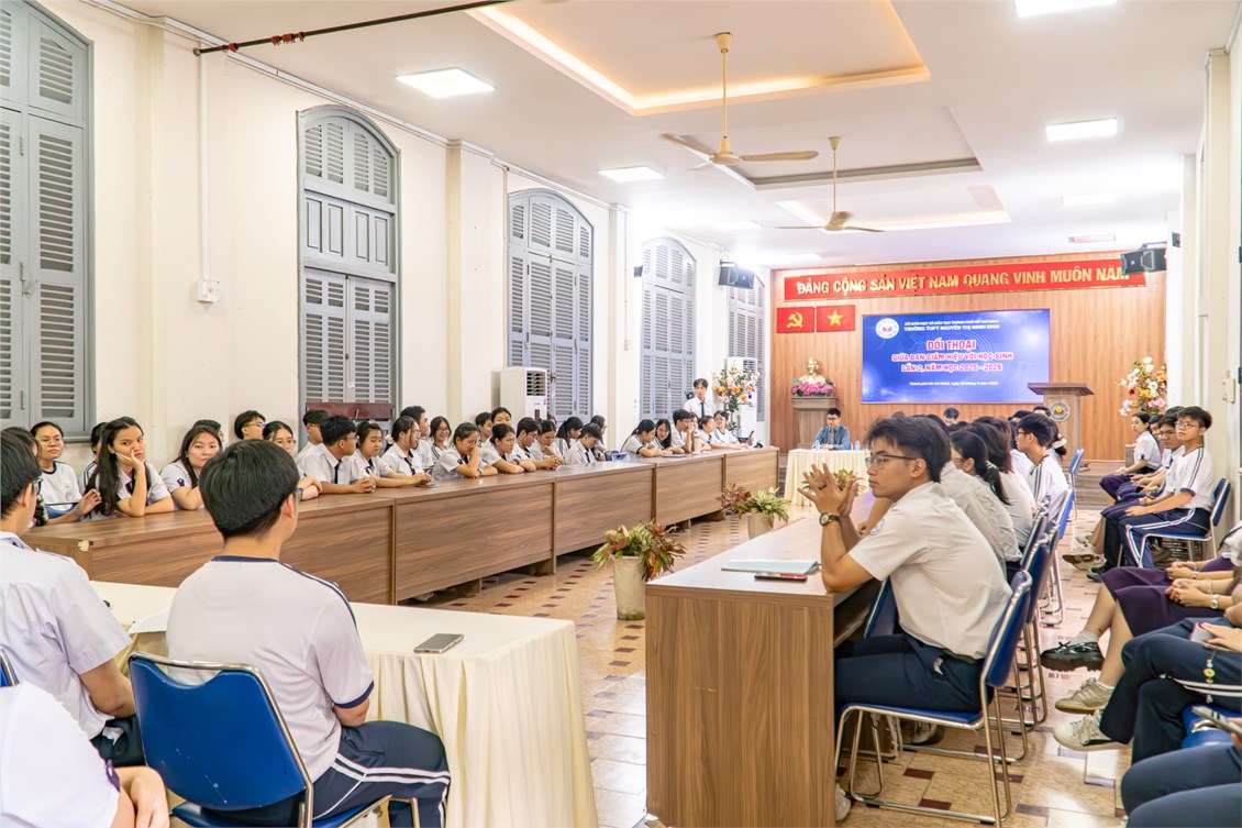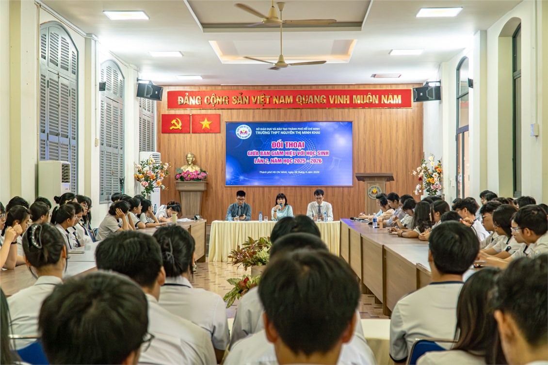 🌱 Tiếp tục hành trình xây dựng “trường học hạnh phúc” – nơi học sinh được lắng nghe, chia sẻ và phát triển toàn diện, Trường THPT Nguyễn Thị Minh Khai đã tổ chức Hội nghị đối thoại giữa Ban Giám hiệu nhà trường và đại diện học sinh. Đây là hoạt động ý nghĩa nhằm phát huy dân chủ trong nhà trường, đồng thời tạo không gian trao đổi cởi mở, chân thành giữa học sinh và nhà trường.